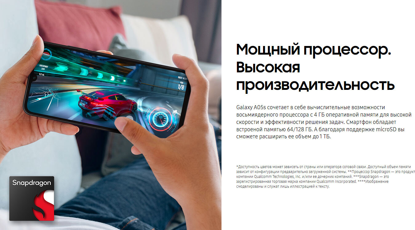 Смартфон SAMSUNG Galaxy A05S 4/64 Серебро